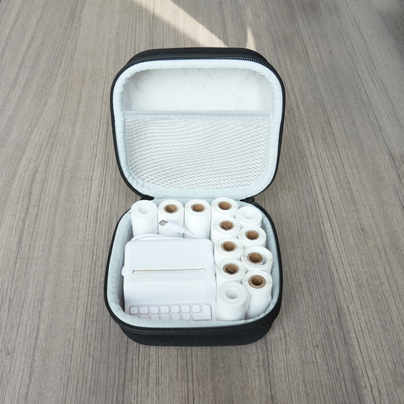 · [Storage bag size]- 100mm*150mm*60mm, can accommodate a printer and a small amount of paper rolls and an USB cable. Phomemo Mini Hard Shell Protection Box is waterproof, dustproof and shockproof. It has a built-in storage compartment and a bumper belt to effectively protect the printer from damage.