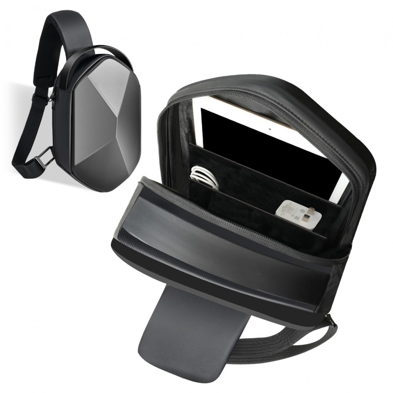 · Material: The messenger sling bag is made of high quality and water-resistant hard material, smooth zippers and inner lining to make this sling backpack good looking and useful.